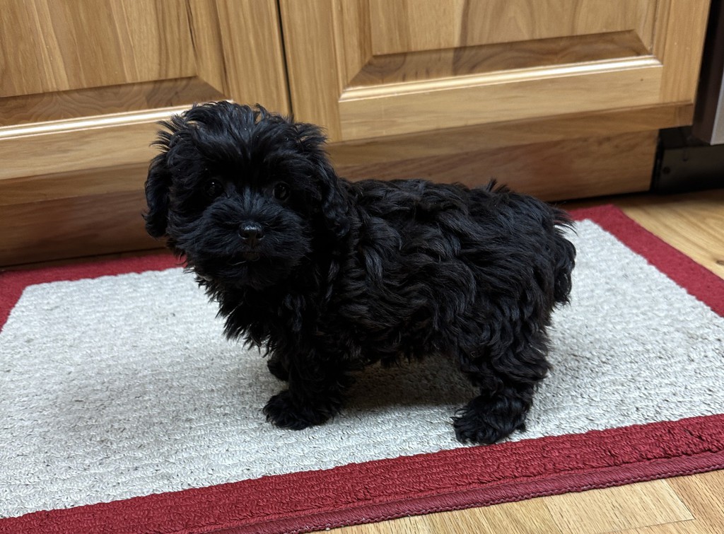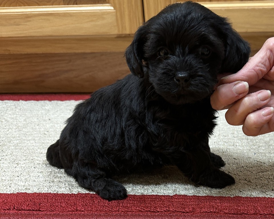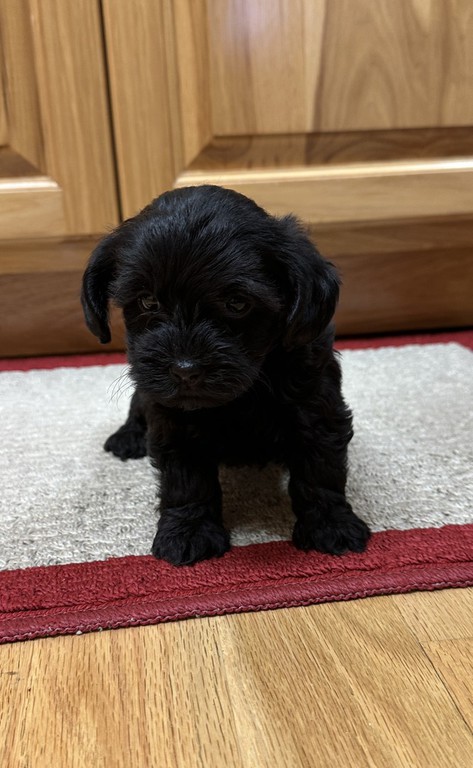 This little female Yorkipoo would make a great addition to any family! She's a beautiful little gal with a thick black hair coat! She's a calm, laid back little female with a sweet little personality. She has all vaccinations and wormings current, microchipped and registered ICA.